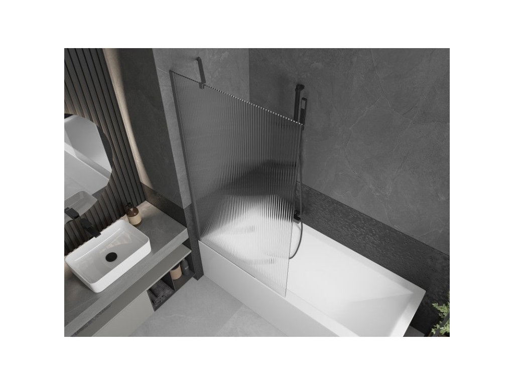 Mexen Next 1-krídlová vaňová zástena 90 x 150 cm, pruhovaná, pištoľový kov - 895-090-000-00-09-95