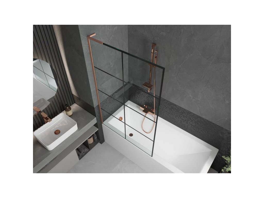 Mexen Next L 1-krídlová vaňová zástena 100 x 150 cm, čierny dizajn, brúsená meď - 895-100-000-03-77-65