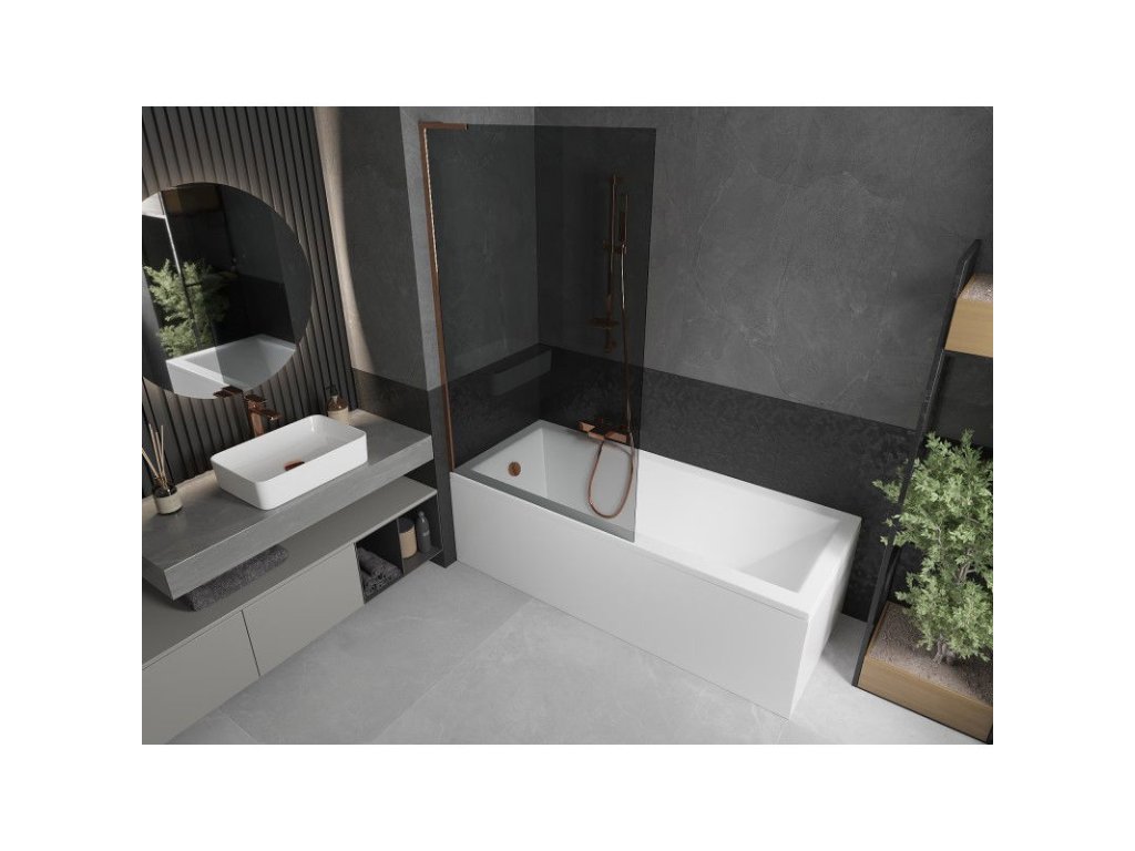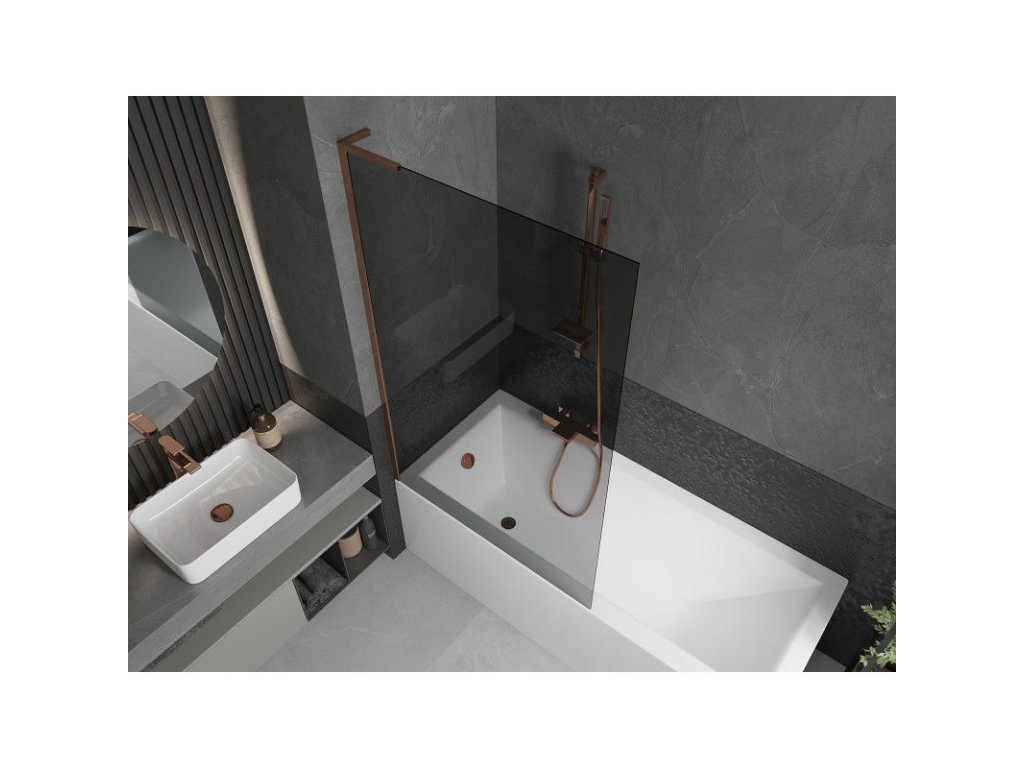 Mexen Next L 1-krídlová vaňová zástena 100 x 150 cm, grafit, ružové zlato - 895-100-000-03-40-60
