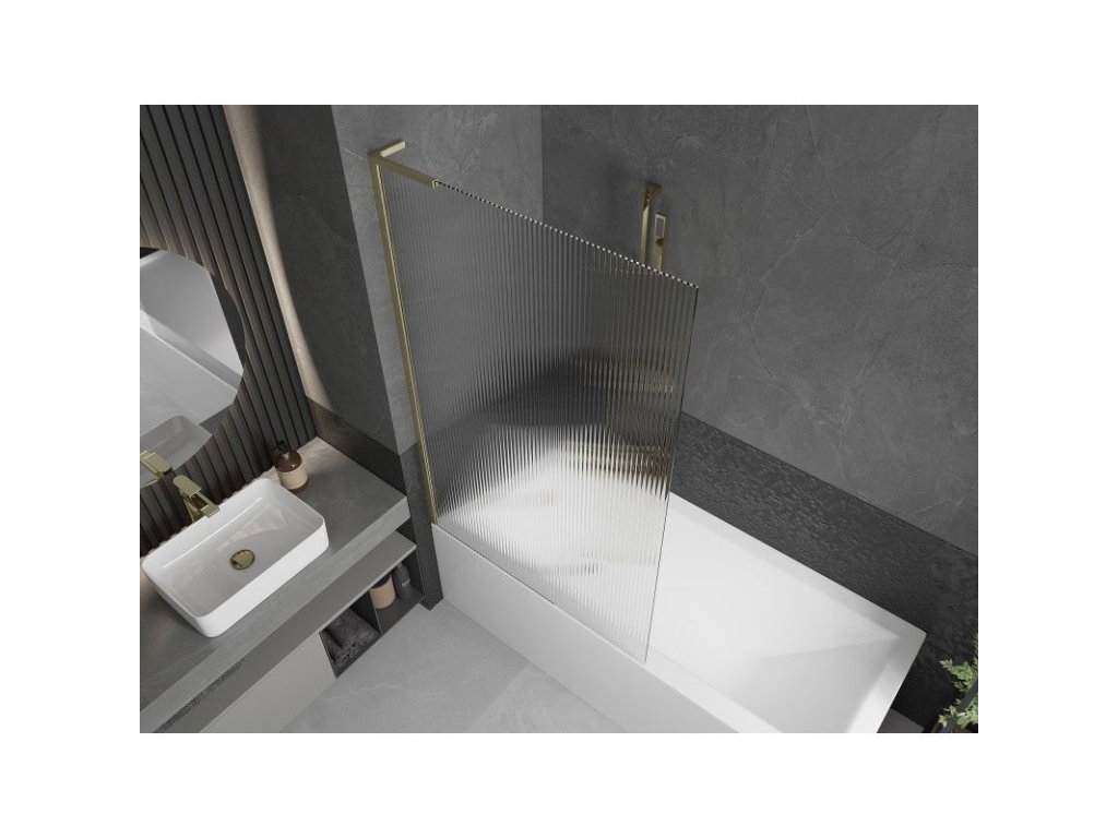 Mexen Next L 1-krídlová vaňová zástena 100 x 150 cm, pruhovaná, brúsená zlatá - 895-100-000-03-09-55