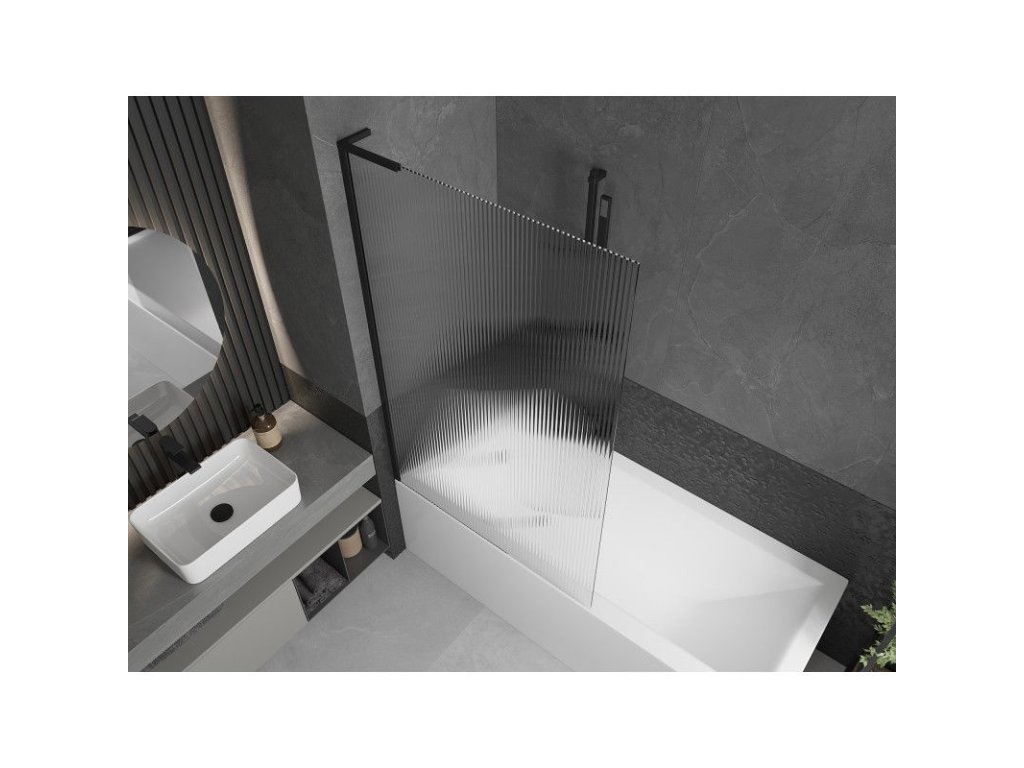 Mexen Next L 1-krídlová vaňová zástena 100 x 150 cm, pruhovaná, čierna - 895-100-000-03-09-70