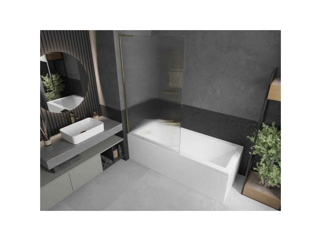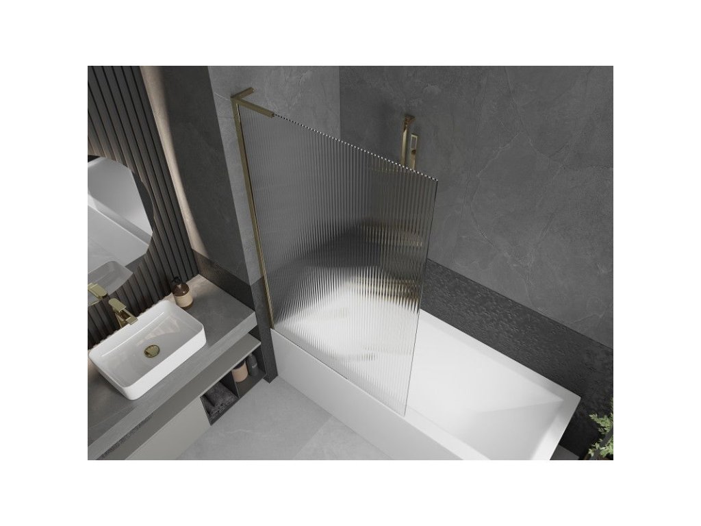 Mexen Next L 1-krídlová vaňová zástena 100 x 150 cm, pruhovaná, zlatá - 895-100-000-03-09-50
