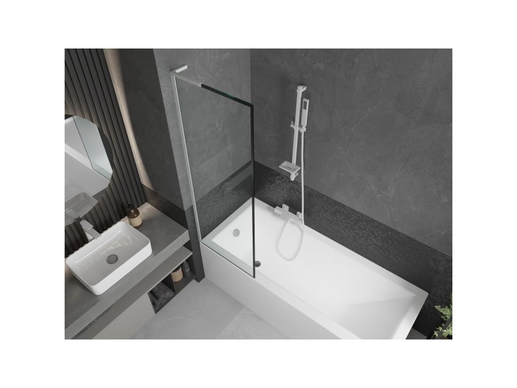 Mexen Next L 1-krídlová vaňová zástena 60 x 150 cm, čierny dizajn, biela - 895-060-000-03-70-20