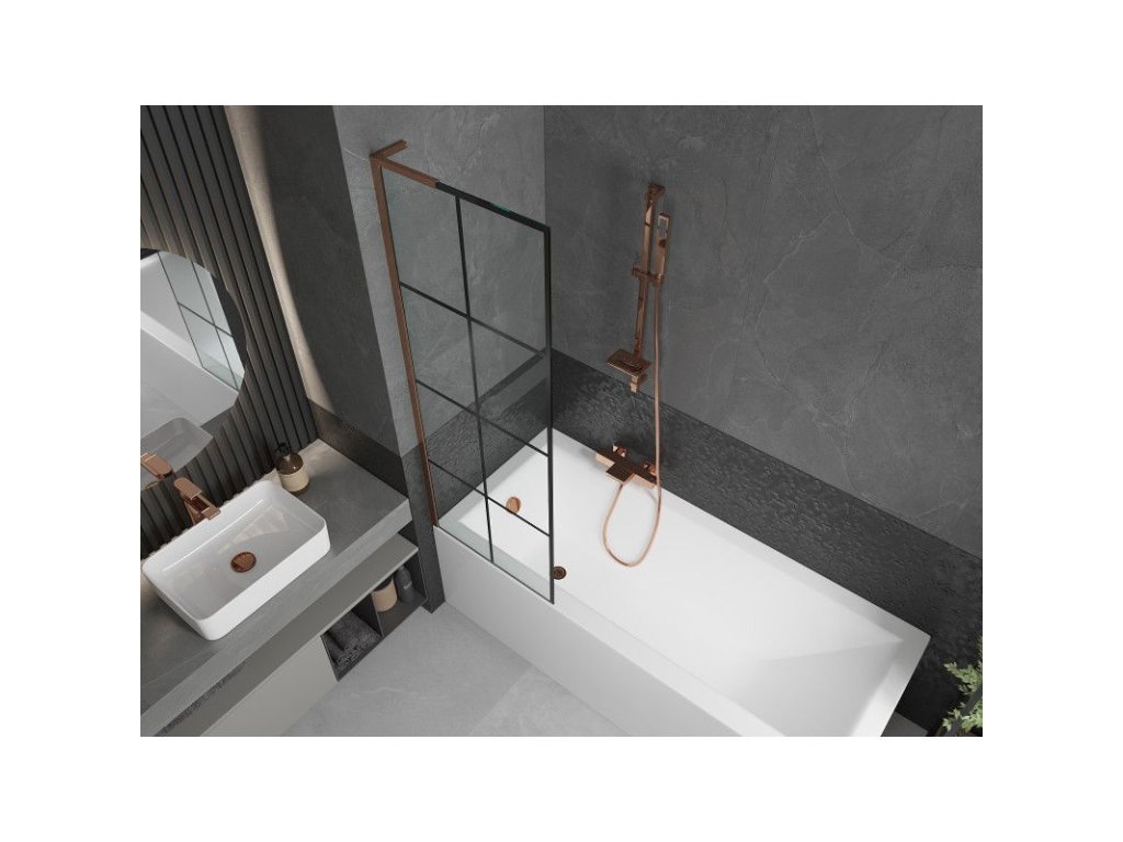 Mexen Next L 1-krídlová vaňová zástena 60 x 150 cm, čierny dizajn, ružové zlato - 895-060-000-03-77-60
