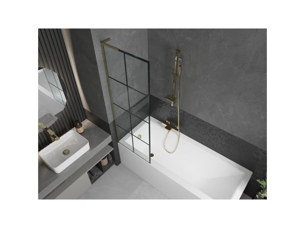 Mexen Next L 1-krídlová vaňová zástena 60 x 150 cm, čierny dizajn, zlatá - 895-060-000-03-77-50