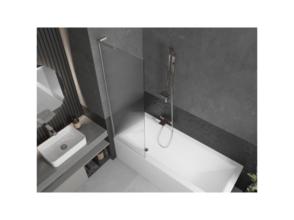 Mexen Next L 1-krídlová vaňová zástena 60 x 150 cm, pruhovaná, brúsený nikel - 895-060-000-03-09-97