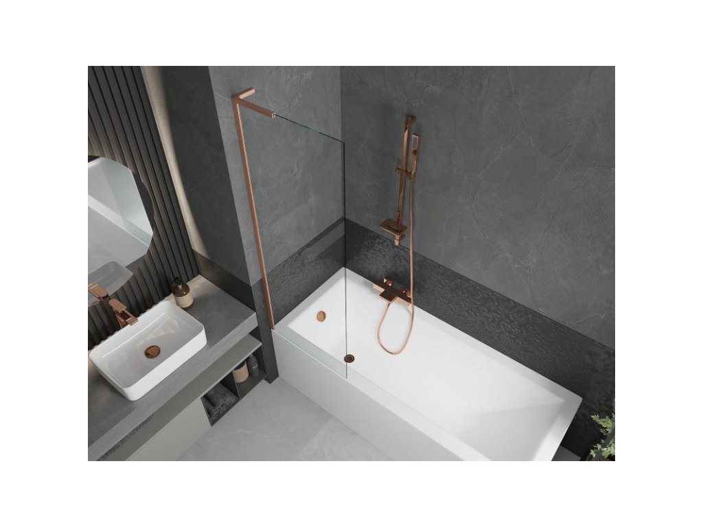 Mexen Next L 1-krídlová vaňová zástena 60 x 150 cm, transparentná, brúsená meď - 895-060-000-03-00-65