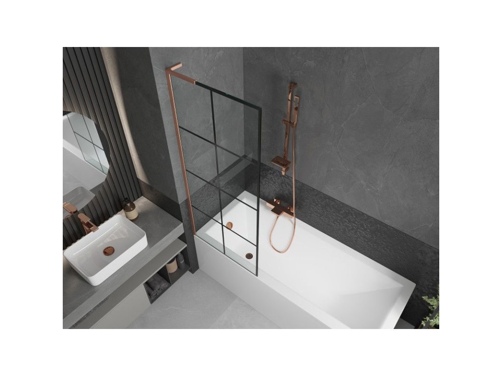 Mexen Next L 1-krídlová vaňová zástena 70 x 150 cm, čierny dizajn, brúsená meď - 895-070-000-03-77-65