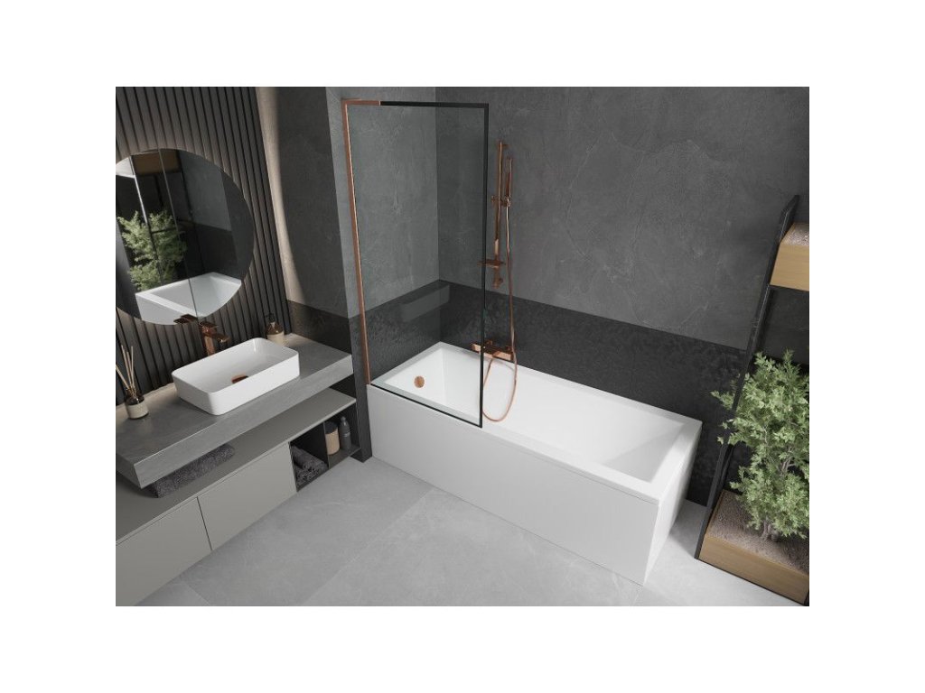 Mexen Next L 1-krídlová vaňová zástena 80 x 150 cm, čierny dizajn, brúsená meď - 895-080-000-03-70-65