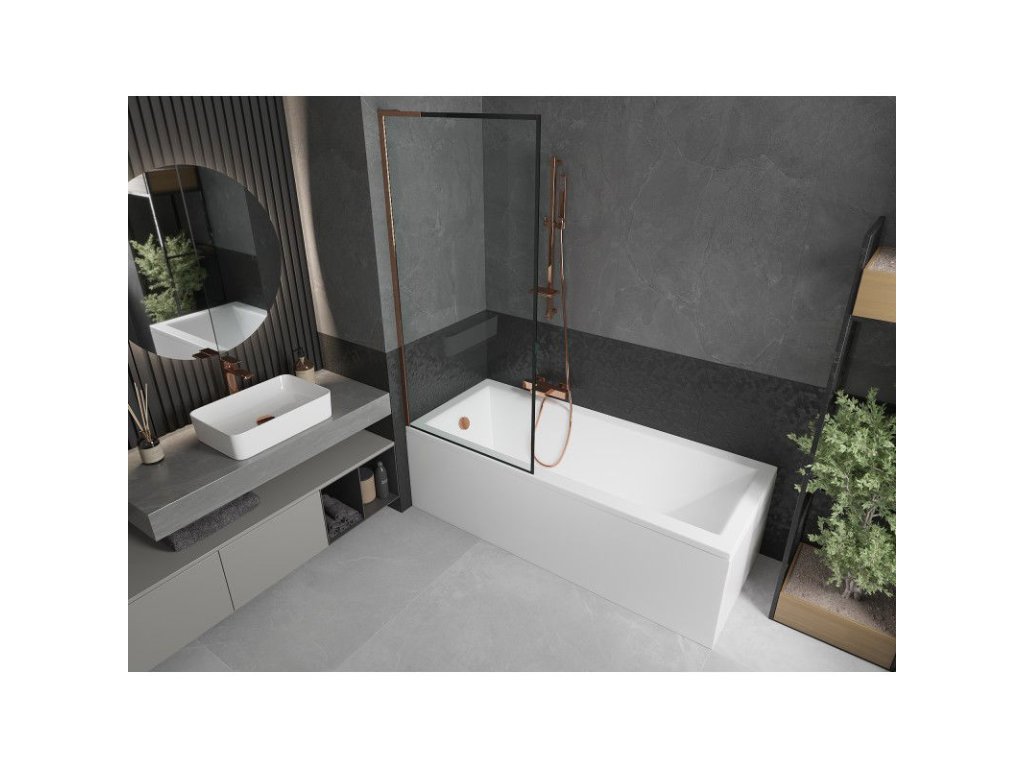 Mexen Next L 1-krídlová vaňová zástena 80 x 150 cm, čierny dizajn, ružové zlato - 895-080-000-03-70-60