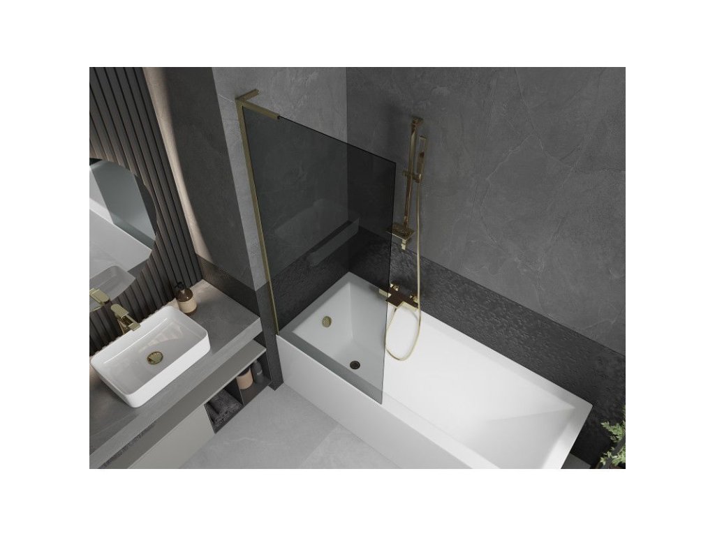 Mexen Next L 1-krídlová vaňová zástena 80 x 150 cm, grafitová, zlatá - 895-080-000-03-40-50