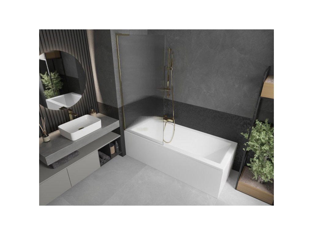 Mexen Next L 1-krídlová vaňová zástena 80 x 150 cm, pruhovaná, zlatá - 895-080-000-03-09-50