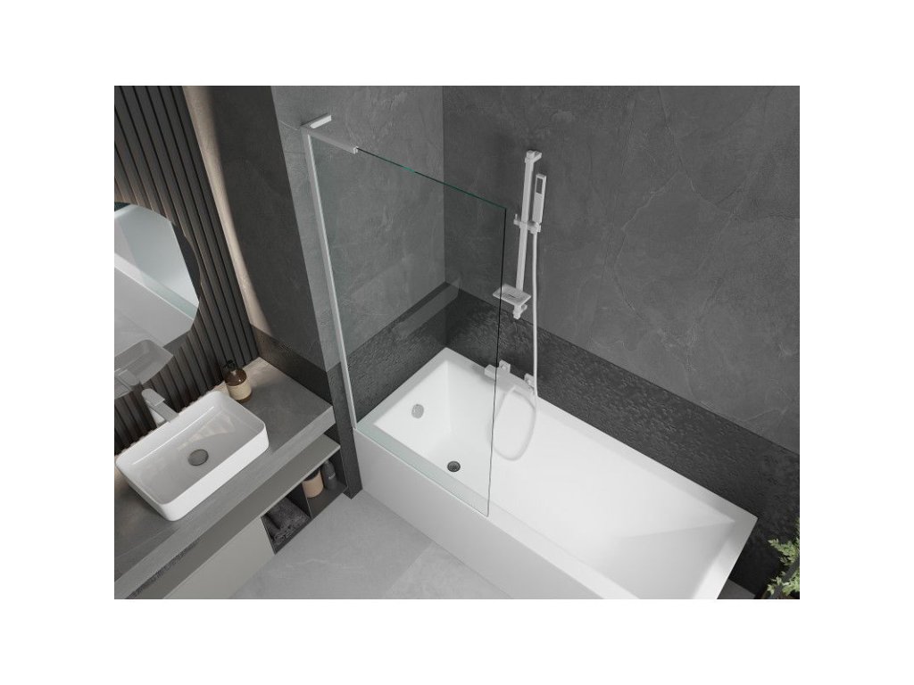 Mexen Next L 1-krídlová vaňová zástena 80 x 150 cm, transparentná, biela - 895-080-000-03-00-20
