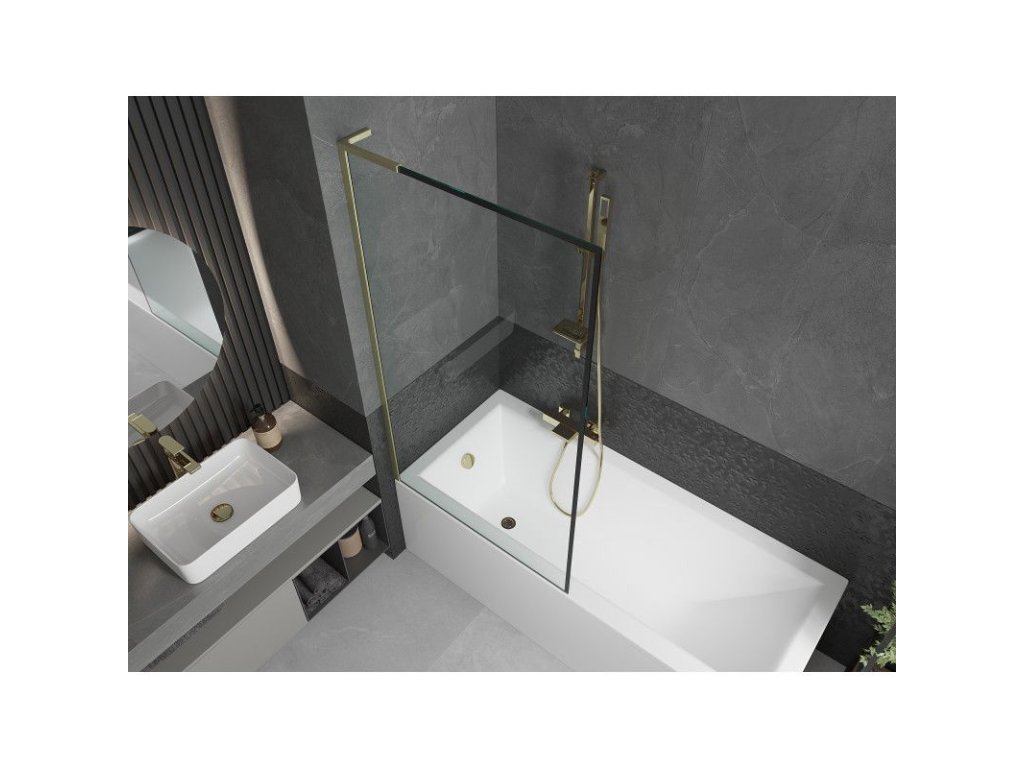 Mexen Next L 1-krídlová vaňová zástena 90 x 150 cm, čierny dizajn, brúsené zlato - 895-090-000-03-70-55