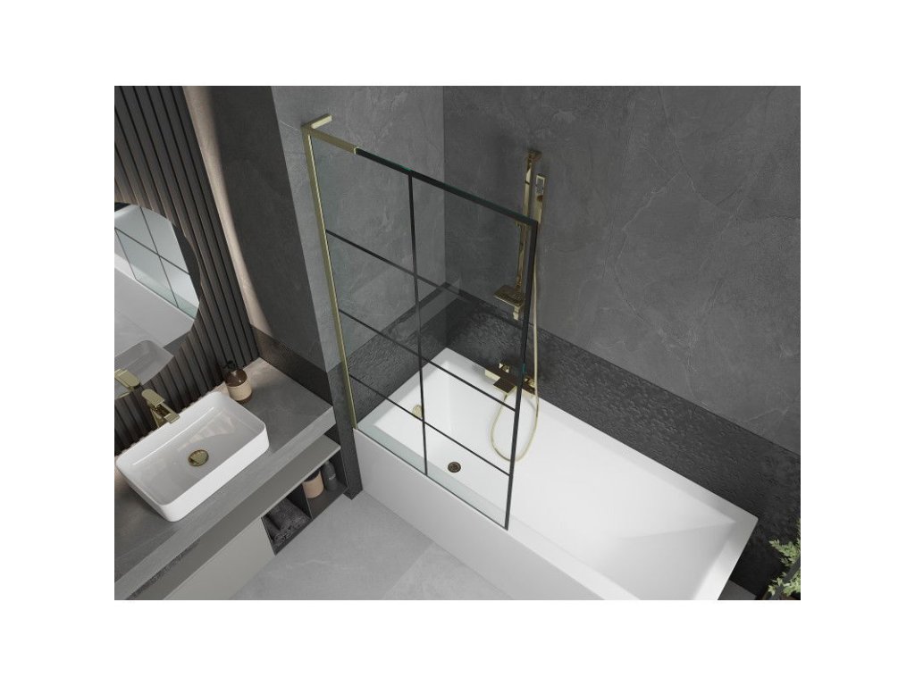 Mexen Next L 1-krídlová vaňová zástena 90 x 150 cm, čierny dizajn, brúsené zlato - 895-090-000-03-77-55