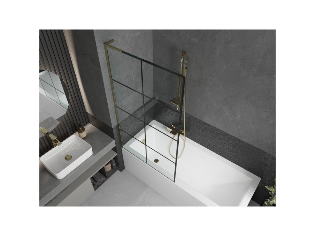 Mexen Next L 1-krídlová vaňová zástena 90 x 150 cm, čierny dizajn, zlatá - 895-090-000-03-77-50