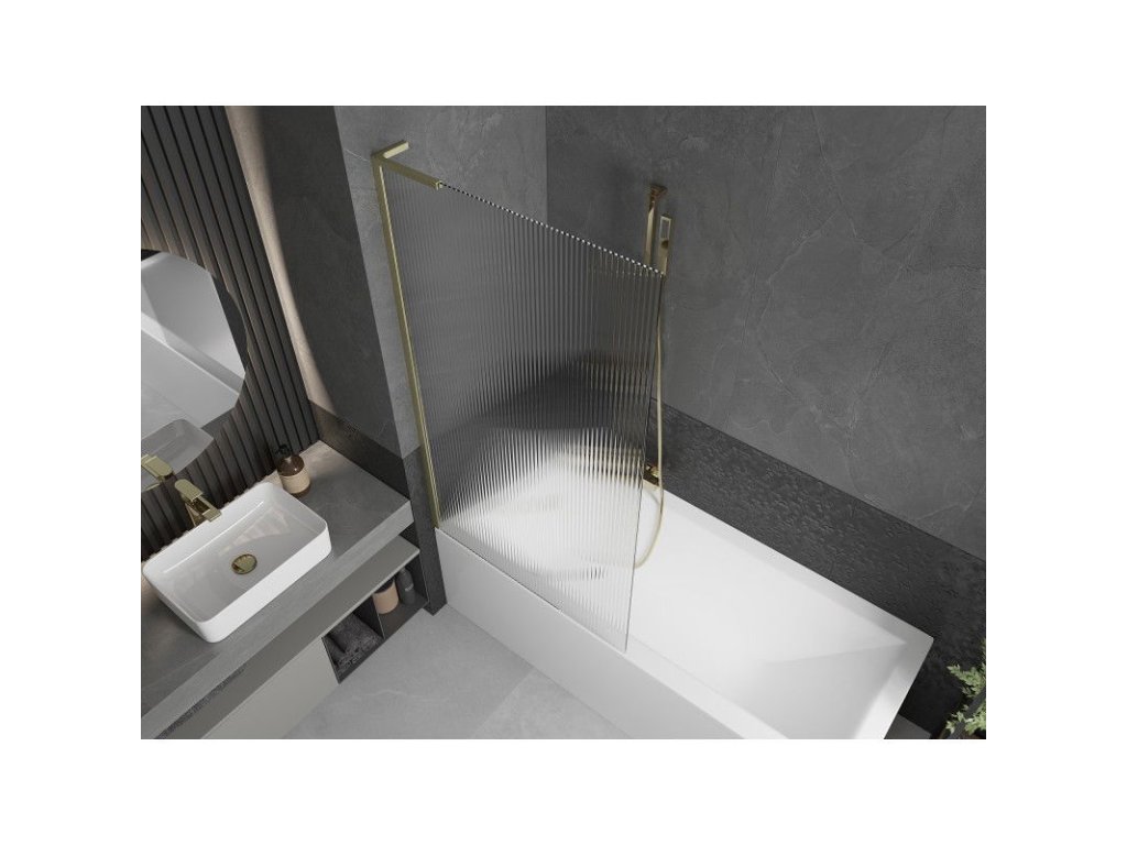 Mexen Next L 1-krídlová vaňová zástena 90 x 150 cm, pruhovaná, brúsená zlatá - 895-090-000-03-09-55