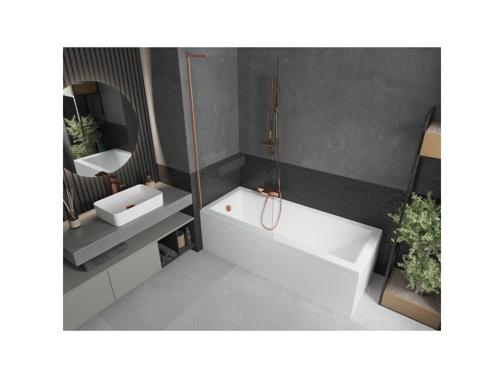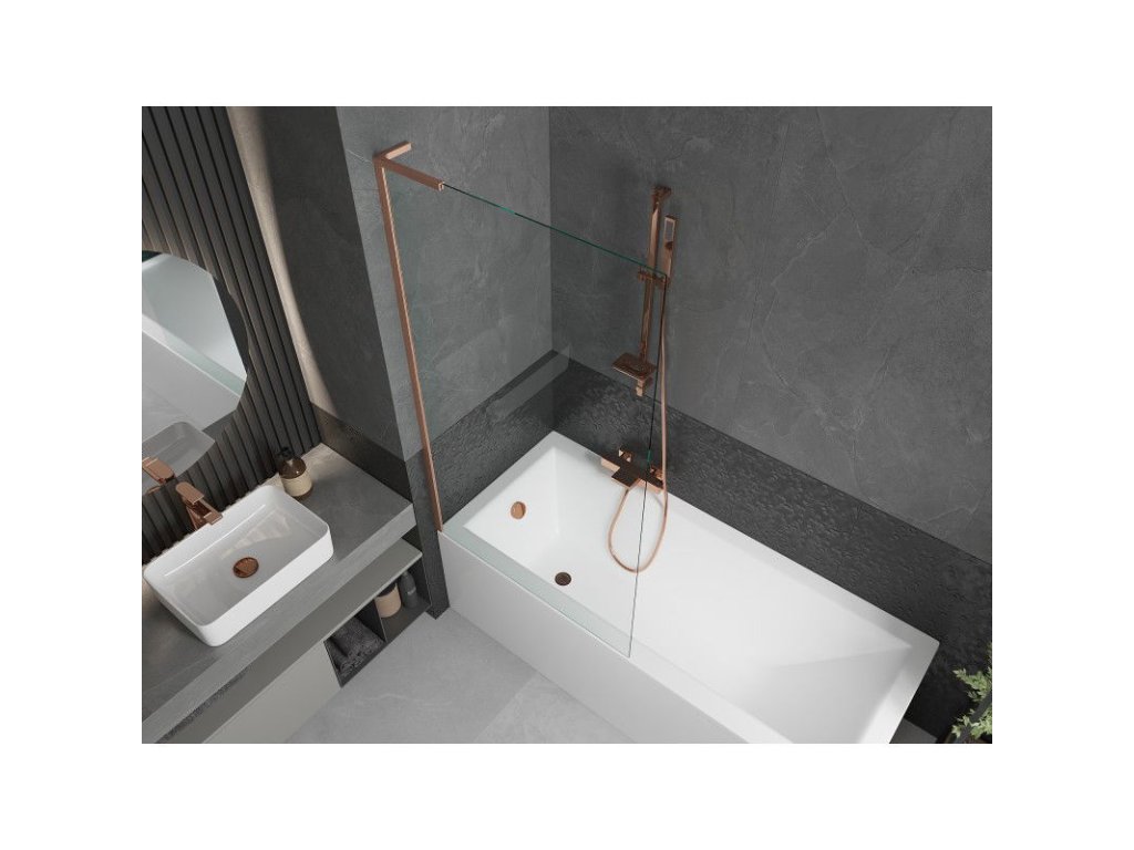 Mexen Next L 1-krídlová vaňová zástena 90 x 150 cm, transparentná, brúsená meď - 895-090-000-03-00-65