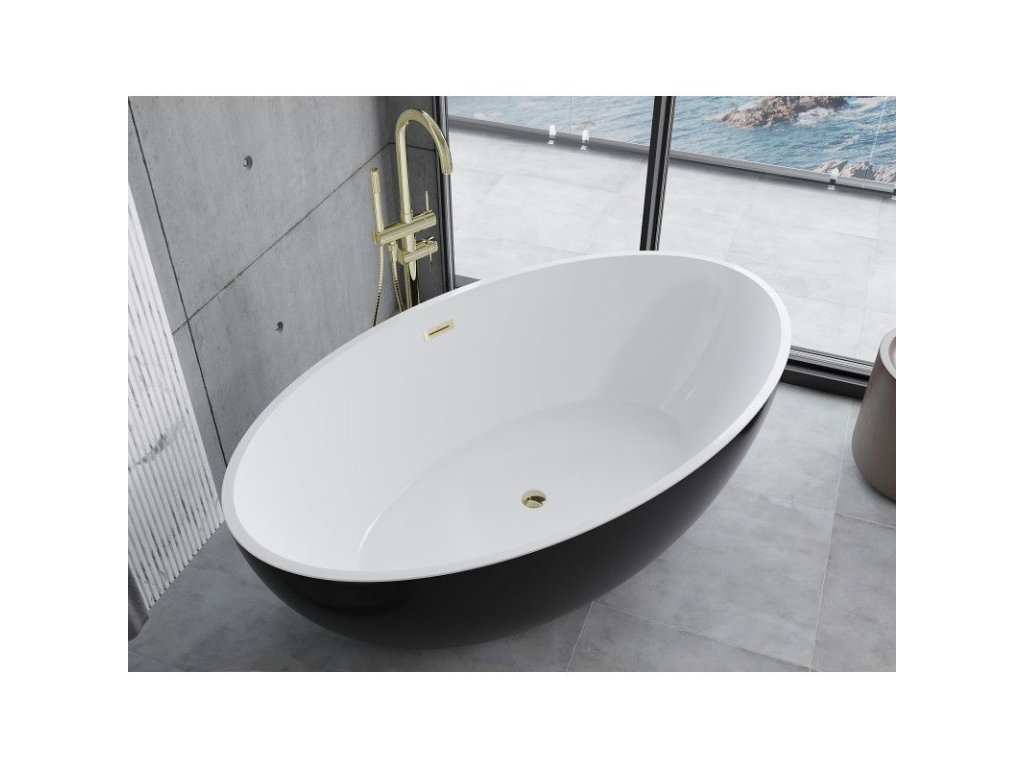 Mexen Nike voľne stojaca vaňa 175 x 100 cm, biela/čierna, zlatý prepad - 54071751075-50