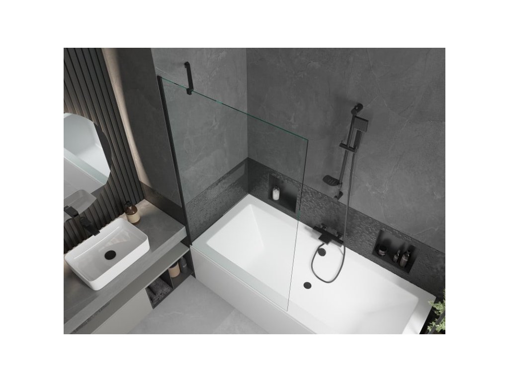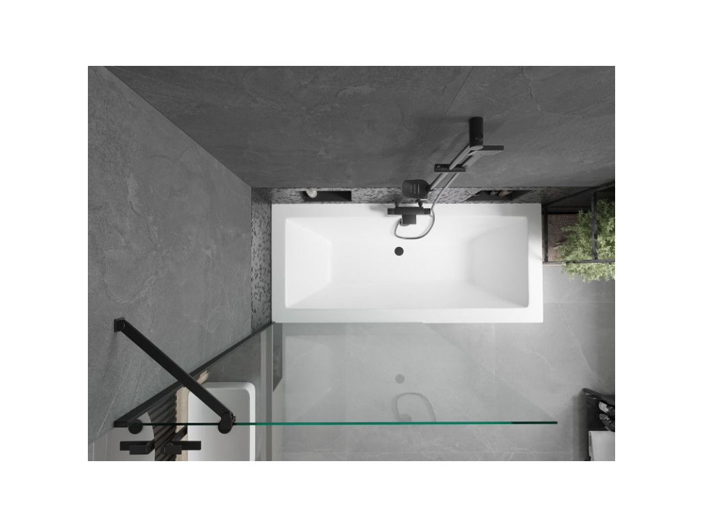 Mexen Obdĺžniková vaňa Cube 170 x 80 cm s krytom a 1-krídlovou sprchovou zástenou 100 cm, transparentná, čierna - 550517080X9510000070