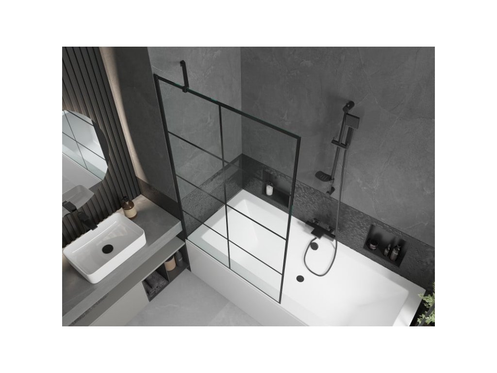 Mexen Obdĺžniková vaňa Cube 170 x 80 cm s krytom a 1-krídlovou zástenou 100 cm, čierne prevedenie - 550517080X9510007077