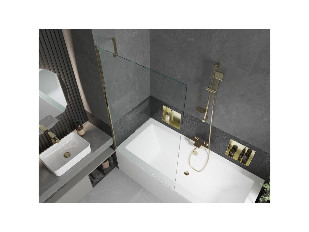 Mexen Obdĺžniková vaňa Cube 170 x 80 cm s krytom a 1-krídlovou zástenou 100 cm, transparentná, zlatá - 550517080X9510000050