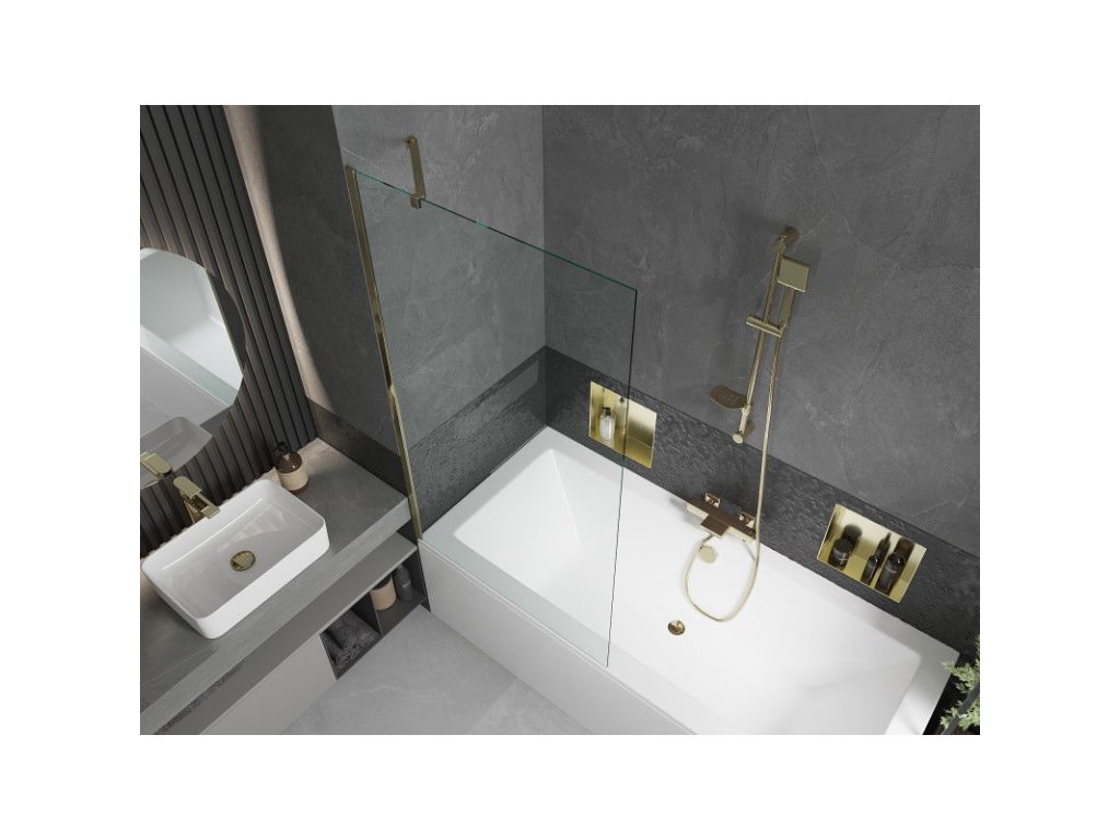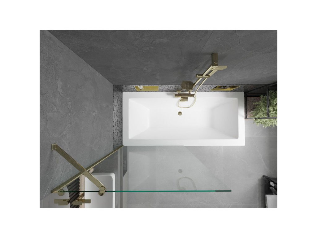 Mexen Obdĺžniková vaňa Cube 170 x 80 cm s krytom a 90 cm 1-krídlovou sprchovou zástenou, transparentná, zlatá - 550517080X9509000050