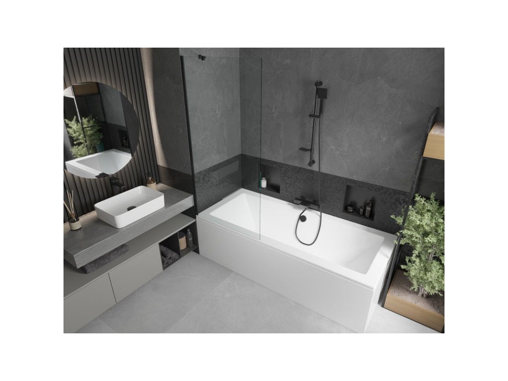Mexen Obdĺžniková vaňa Cube 180 x 80 cm s krytom a 1-krídlovou sprchovou zástenou 80 cm, transparentná, čierna - 550518080X9508000070