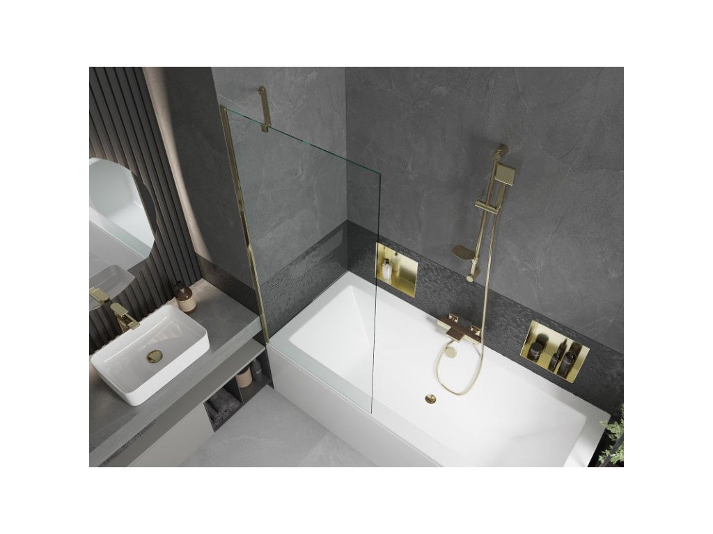Mexen Obdĺžniková vaňa Cube 180 x 80 cm s krytom a 1-krídlovou sprchovou zástenou 80 cm, transparentná, zlatá - 550518080X9508000050