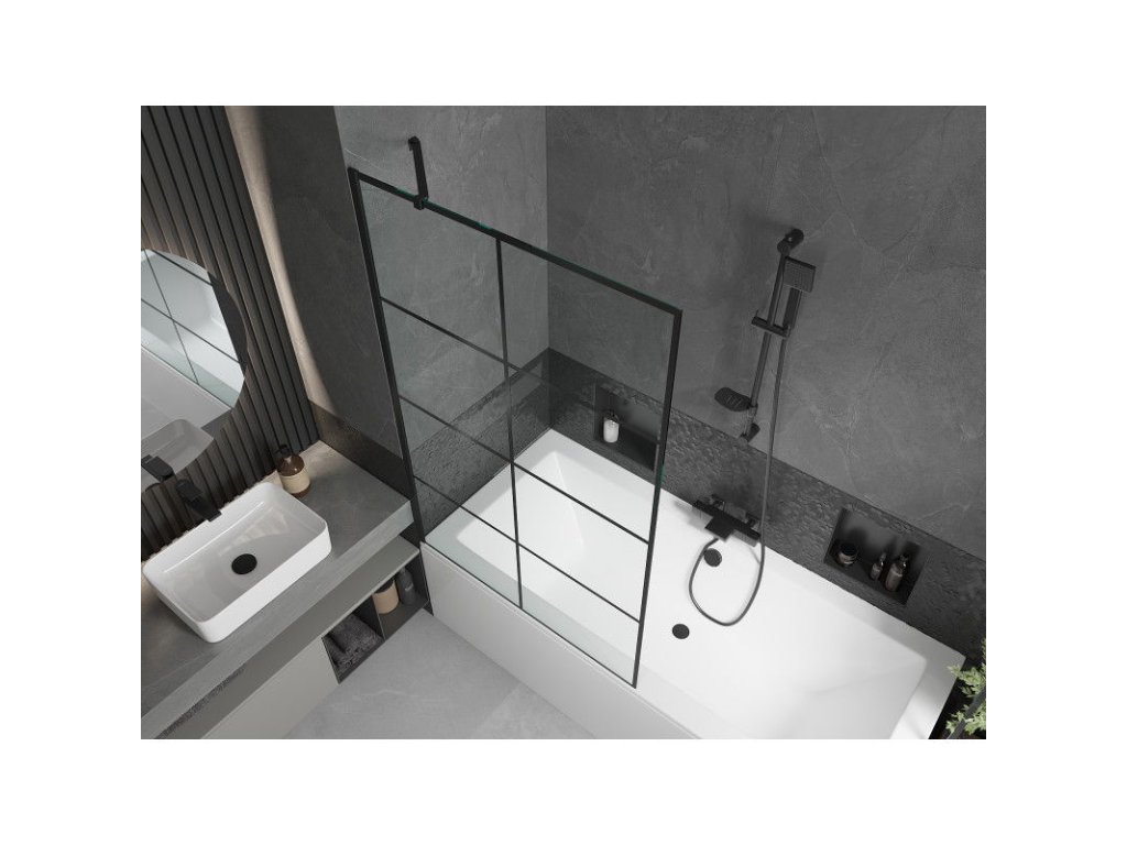 Mexen Obdĺžniková vaňa Cube 180 x 80 cm s krytom a 1-krídlovou zástenou 100 cm, čierne prevedenie - 550518080X9510007077