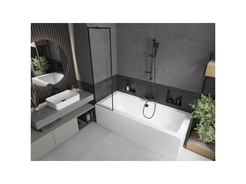 Mexen Obdĺžniková vaňa Cube 180 x 80 cm s obkladom a 50 cm 1-krídlovou sprchovou zástenou, čierny dizajn - 550518080X9505007070