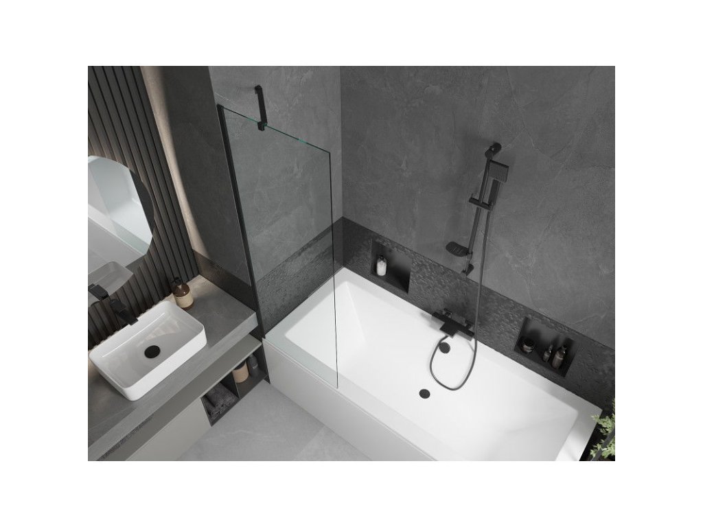 Mexen Obdĺžniková vaňa Cube 180 x 80 cm s obkladom a 60 cm 1-krídlovou sprchovou zástenou, transparentná, čierna - 550518080X9506000070