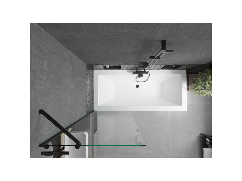 Mexen Obdĺžniková vaňa Cube 180 x 80 cm s obkladom a 70 cm 1-krídlovou sprchovou zástenou, transparentná, čierna - 550518080X9507000070