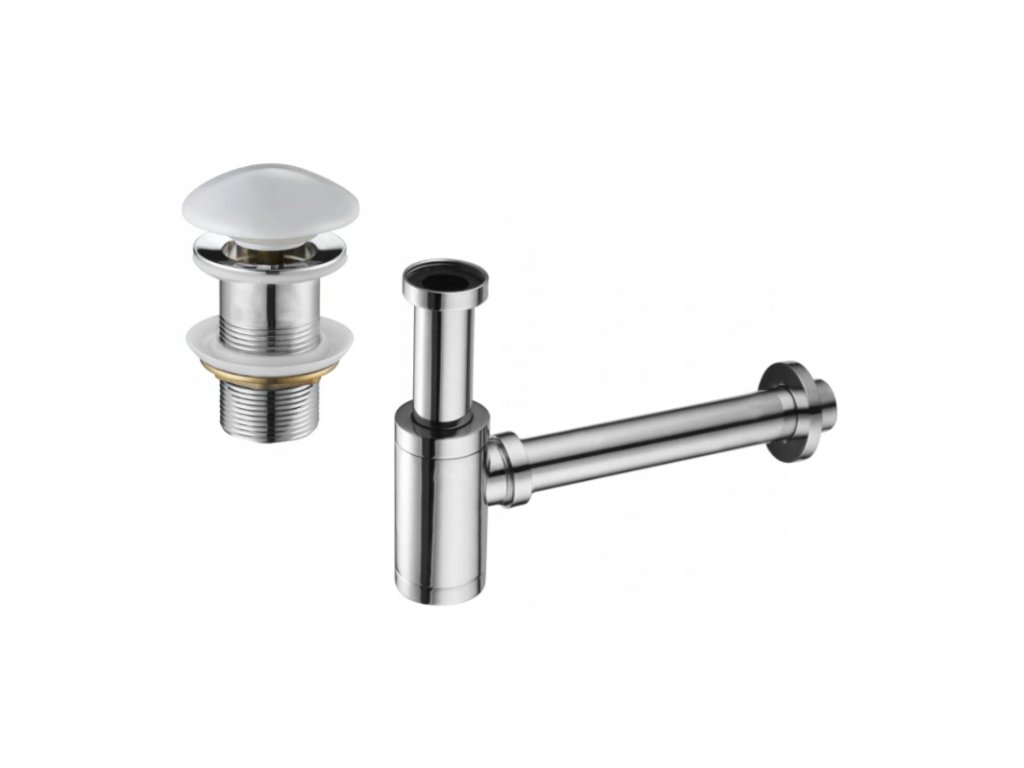 Mexen okrúhly umývadlový sifón s keramickou zátkou, bez prepadu, chróm/biela - 7991050-02