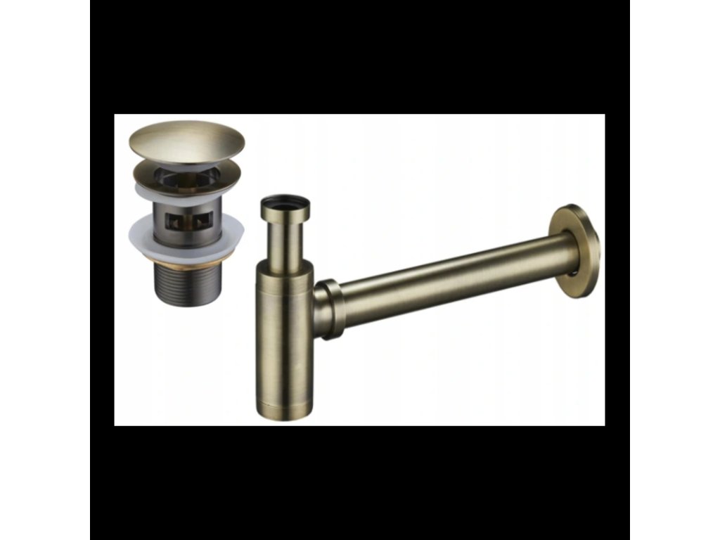 Mexen okrúhly umývadlový sifón so zátkou s kliknutím, prepad, starožitná mosadz - 7992050-40
