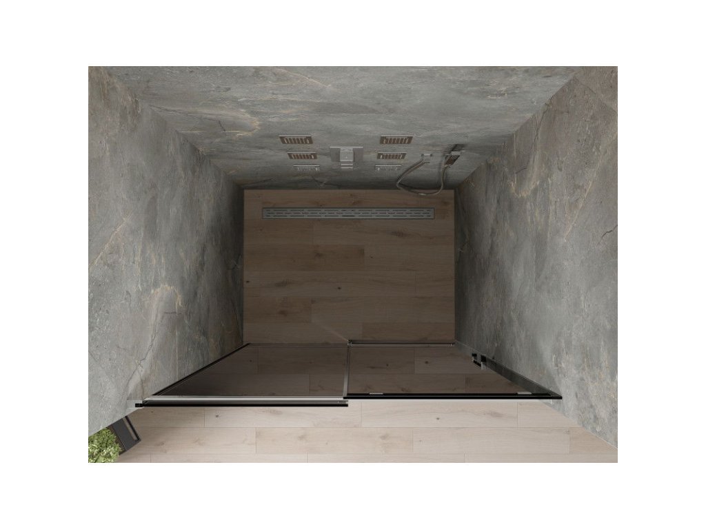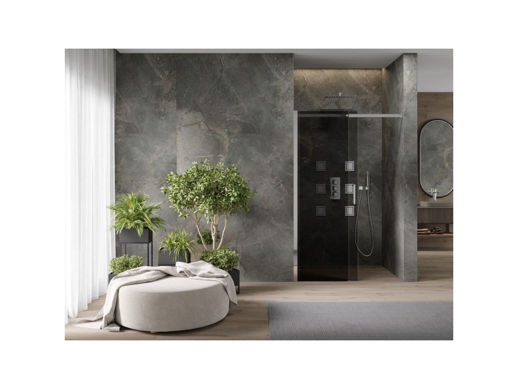 \nTechnické údaje: rozmery: 100x190 cm montáž: univerzálna Ľ+P vstup: posuvné dvere farba skla: šedé sklo - grafit typ skla: tvrdené - bezpečnostné hrúbka skla: 8 mm profil: hliník povrchová úprava: chróm povlak pre ľahké čistenie : áno vyrovnanie nerovností steny: áno nastavenie šírky: áno montáž na dlažbu alebo sprchovú vaničku: áno kovová rukoväť sada tesnení na odvod vody hliníkový prah dveríDodatočné parametre