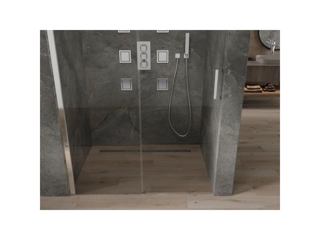 \nTechnické údaje: rozmery: 120x190 cm montáž: univerzálna Ľ+P vstup: posuvné dvere farba skla: priehľadný - transparent typ skla: tvrdené - bezpečnostné hrúbka skla: 8 mm profil: hliník povrchová úprava: chróm povlak pre ľahké čistenie : áno vyrovnanie nerovností steny: áno nastavenie šírky: áno montáž na dlažbu alebo sprchovú vaničku: áno kovová rukoväť sada tesnení na odvod vody hliníkový prah dveríDodatočné parametre