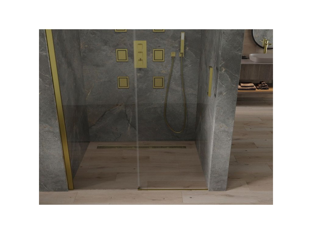 Mexen Omega sprchové dvere posuvné 130 cm, priehľadné sklo, zlaté - 825-130-000-50-00