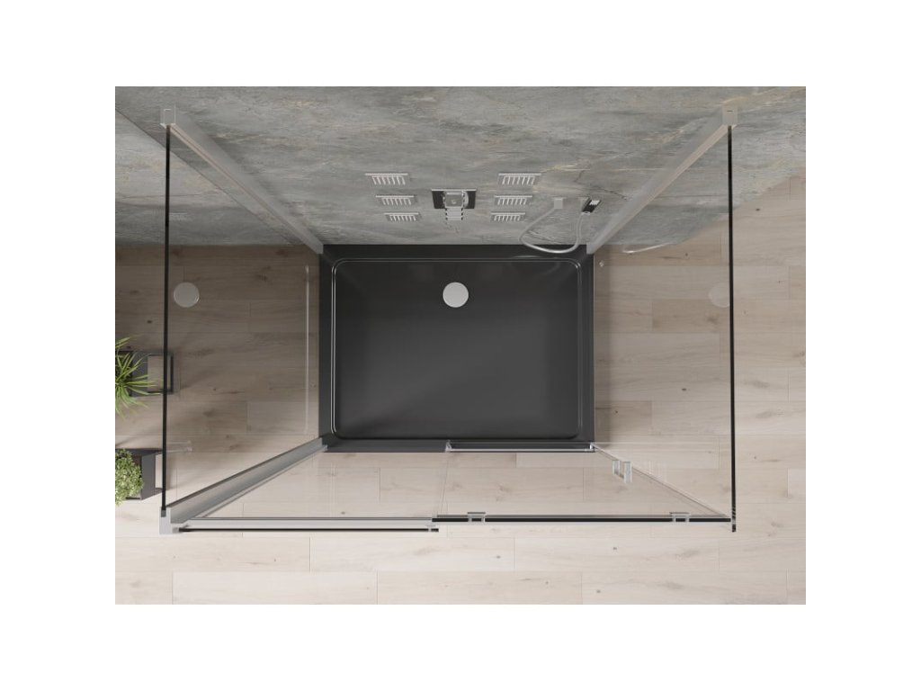 Mexen Omega sprchový kút 3-stenový, posuvné dvere 120 x 80 cm, priehľadné sklo, profil chróm + Flat sprchová vanička, čierna - 825-120-080-01-00-3s-4070