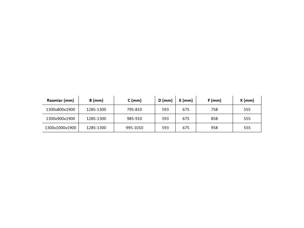 rozmery: 130x80 cm (dvere 130 cm, fixná stena 80 cm)
