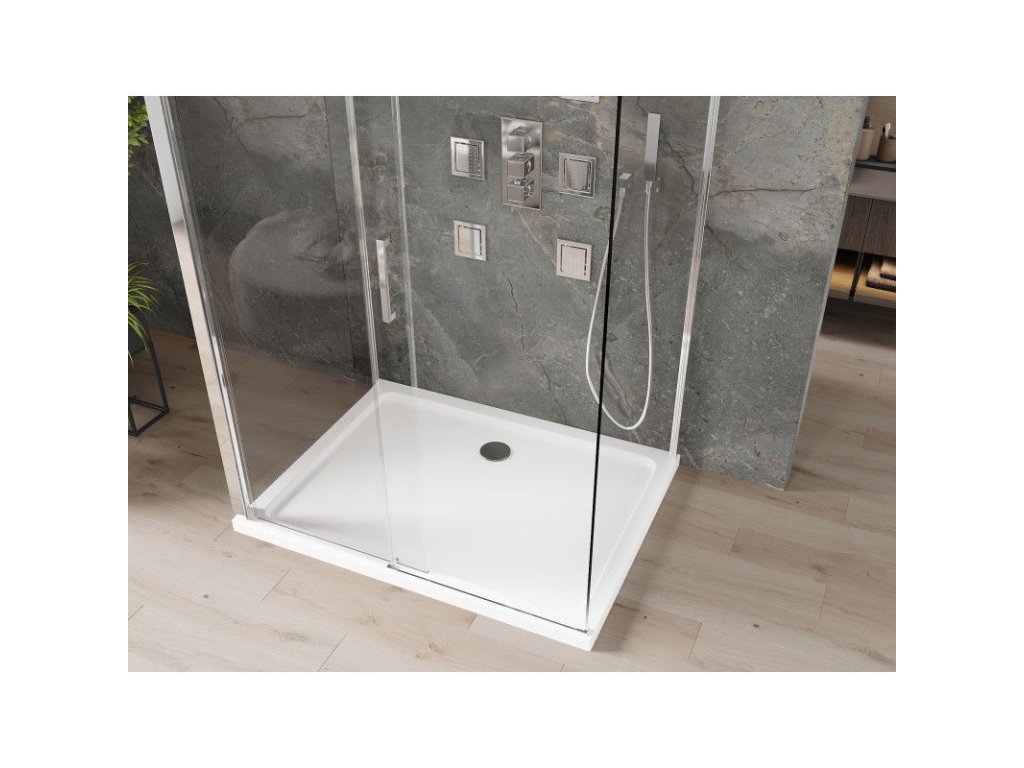 Mexen Omega sprchový kút 3-stenový, posuvné dvere 140 x 100 cm, priehľadné sklo, profil chróm + Flat sprchová vanička, biela - 825-140-100-01-00-3s-4010