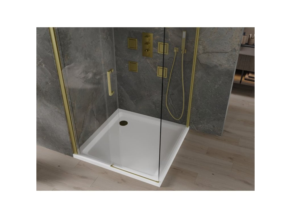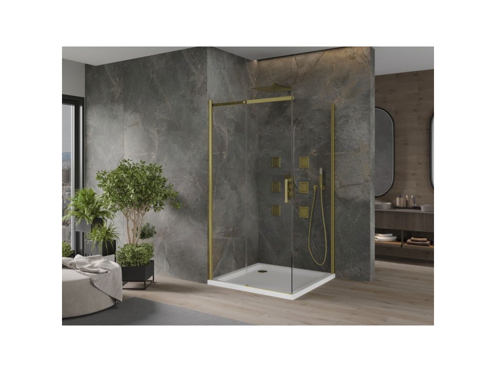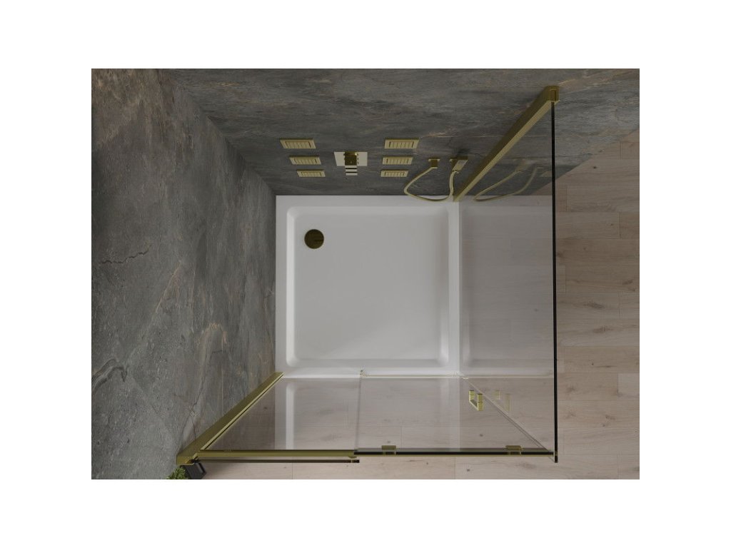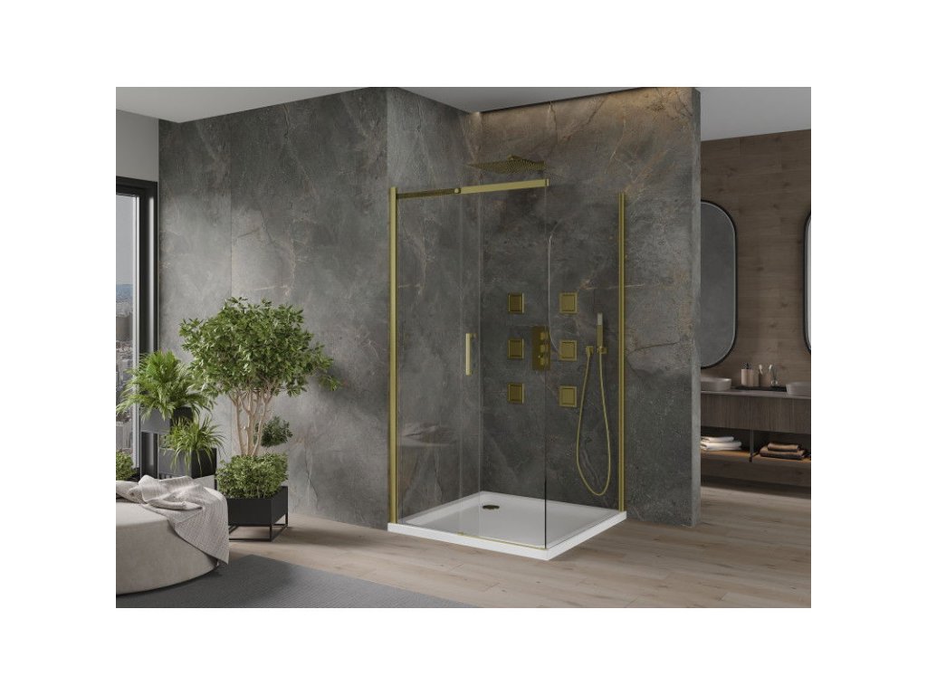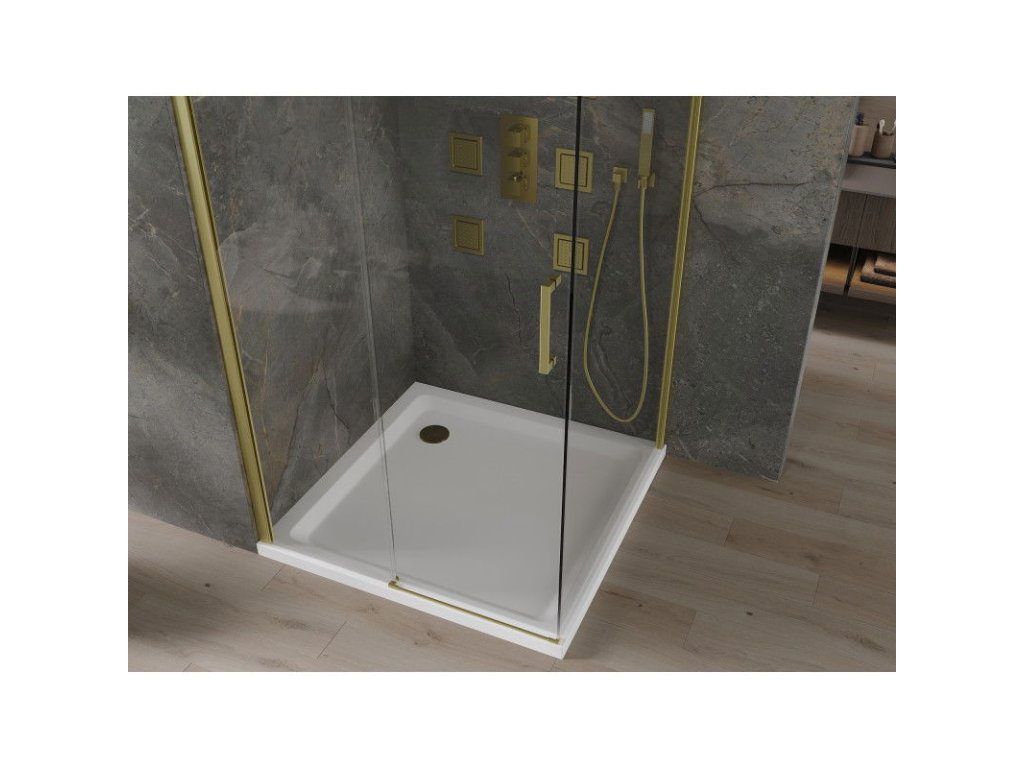Mexen Omega sprchový kút posuvné dvere 100 x 100 cm, priehľadné sklo, profil zlatý + Flat sprchová vanička, biela - 825-100-100-50-00-4010