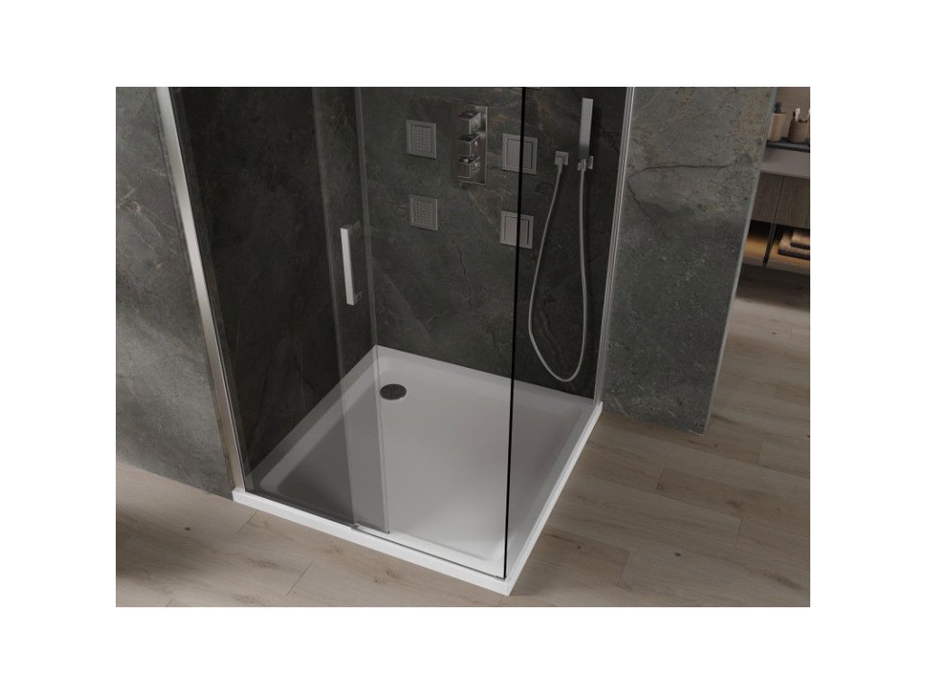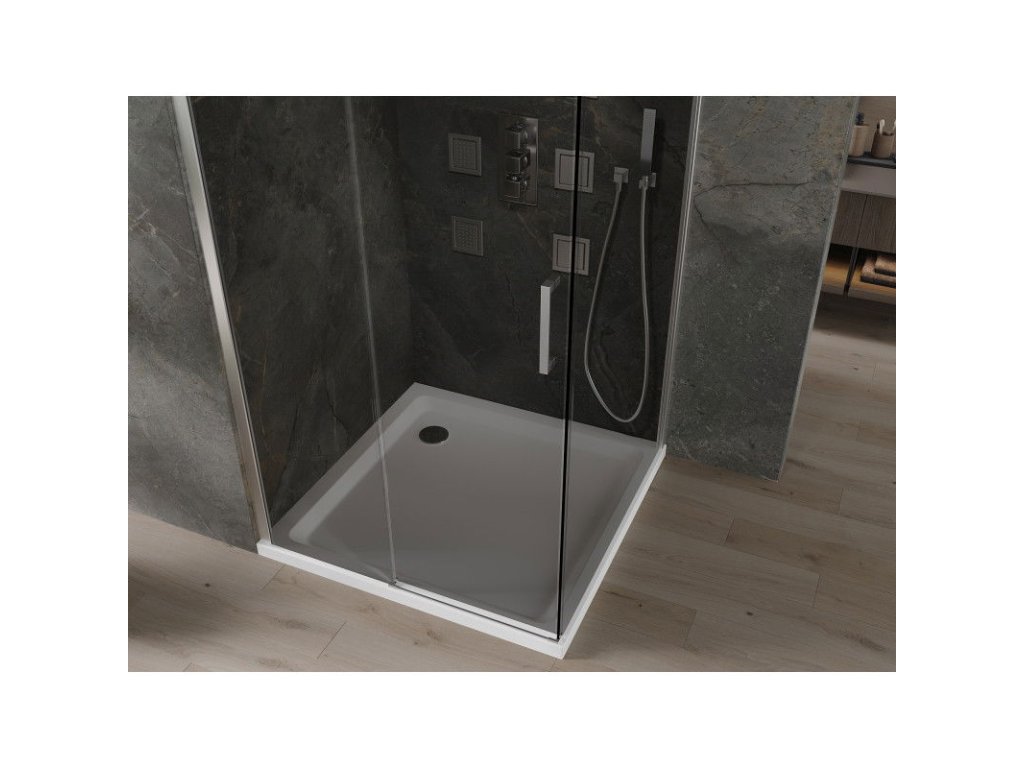 Mexen Omega sprchový kút posuvné dvere 100 x 100 cm, šedé sklo, profil chróm + Flat sprchová vanička, biela - 825-100-100-01-40-4010