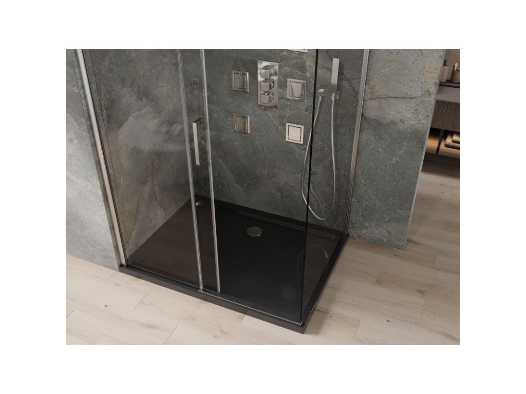 Mexen Omega sprchový kút posuvné dvere 100 x 80 cm, priehľadné sklo, profil chróm + Flat sprchová vanička, čierna - 825-100-080-01-00-4070