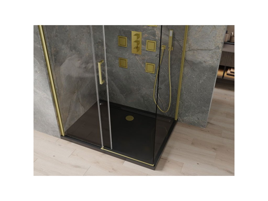 Mexen Omega sprchový kút posuvné dvere 100 x 90 cm, priehľadné sklo, profil zlatý + Flat sprchová vanička, čierna - 825-100-090-50-00-4070G