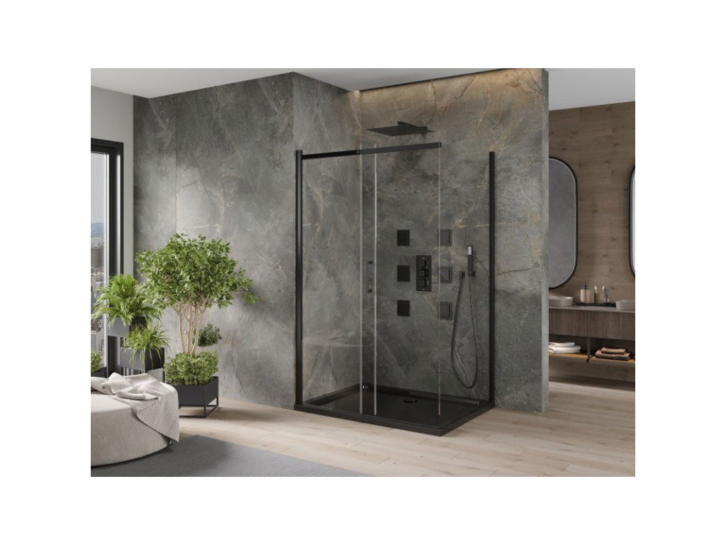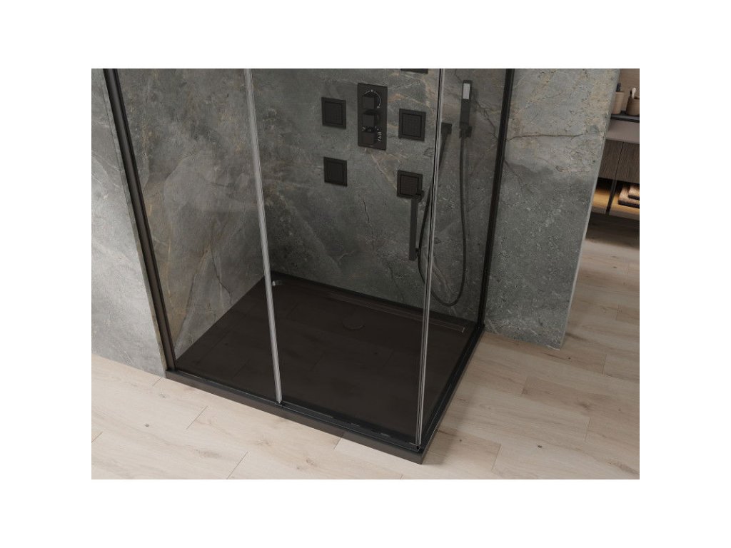 Mexen Omega sprchový kút posuvné dvere 120 x 80 cm, priehľadné sklo, profil čierny + Flat sprchová vanička, čierna - 825-120-080-70-00-4070B