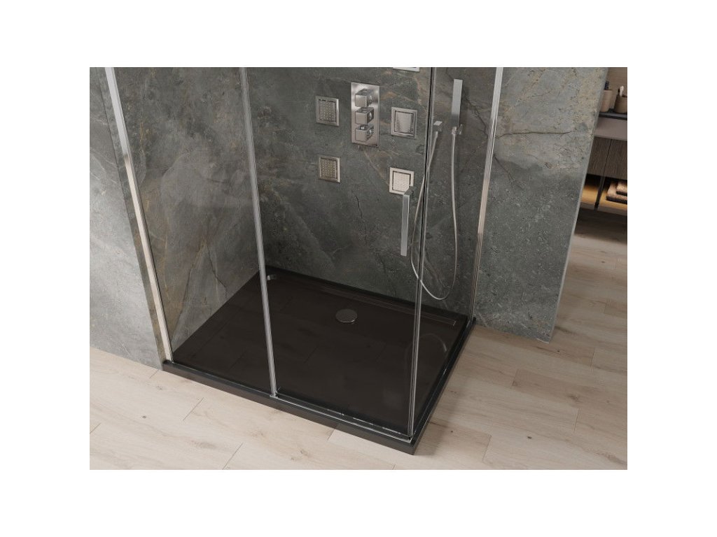 Mexen Omega sprchový kút posuvné dvere 120 x 90 cm, priehľadné sklo, profil chróm + Flat sprchová vanička, čierna - 825-120-090-01-00-4070