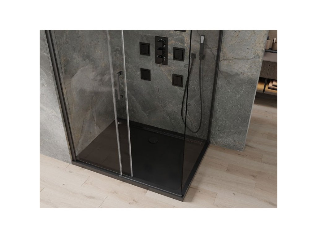 Mexen Omega sprchový kút posuvné dvere 120 x 90 cm, priehľadné sklo, profil čierny + Flat sprchová vanička, čierna - 825-120-090-70-00-4070B