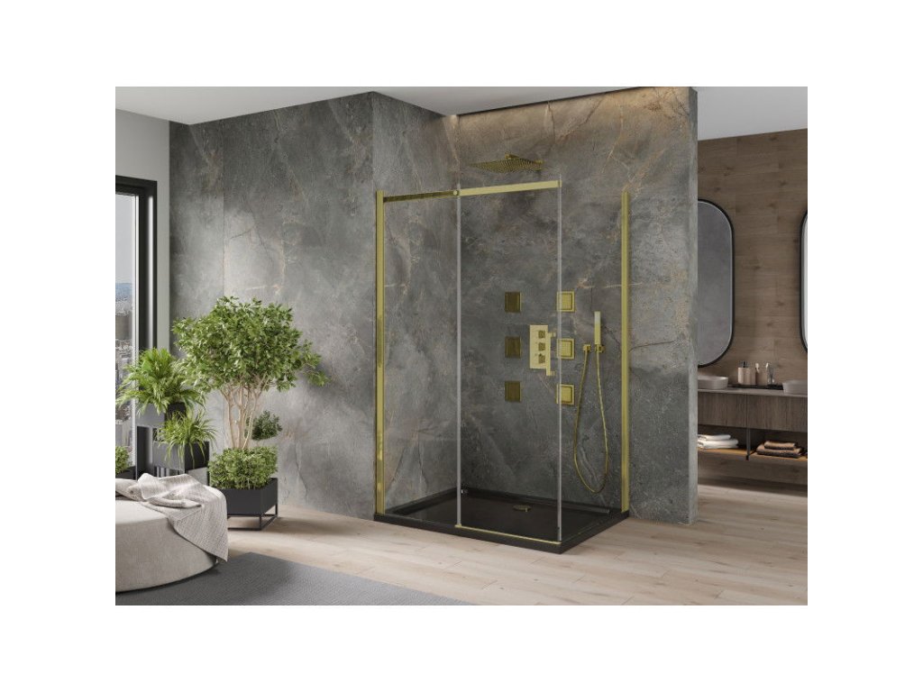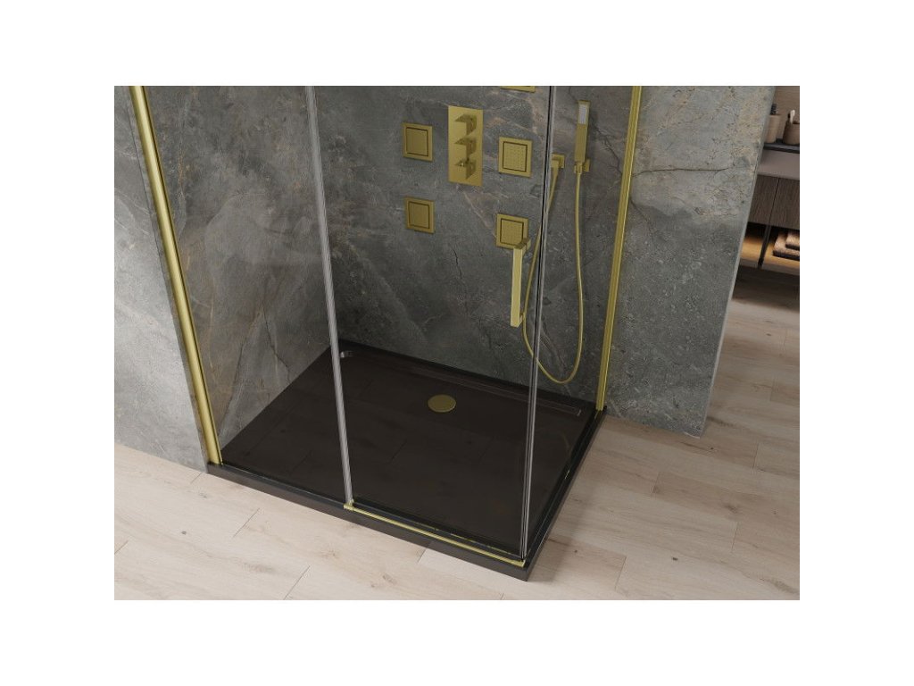 Mexen Omega sprchový kút posuvné dvere 120 x 90 cm, priehľadné sklo, profil zlatý + Flat sprchová vanička, čierna - 825-120-090-50-00-4070G