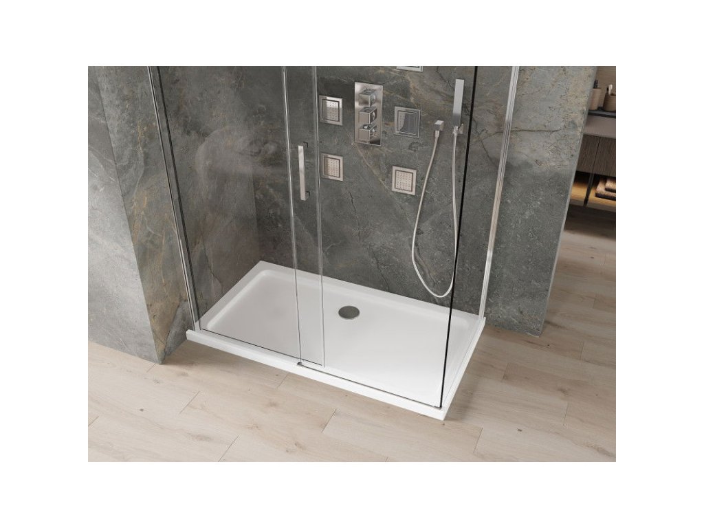 Mexen Omega sprchový kút posuvné dvere 130 x 70 cm, priehľadné sklo, profil chróm + Flat sprchová vanička, biela - 825-130-070-01-00-4010